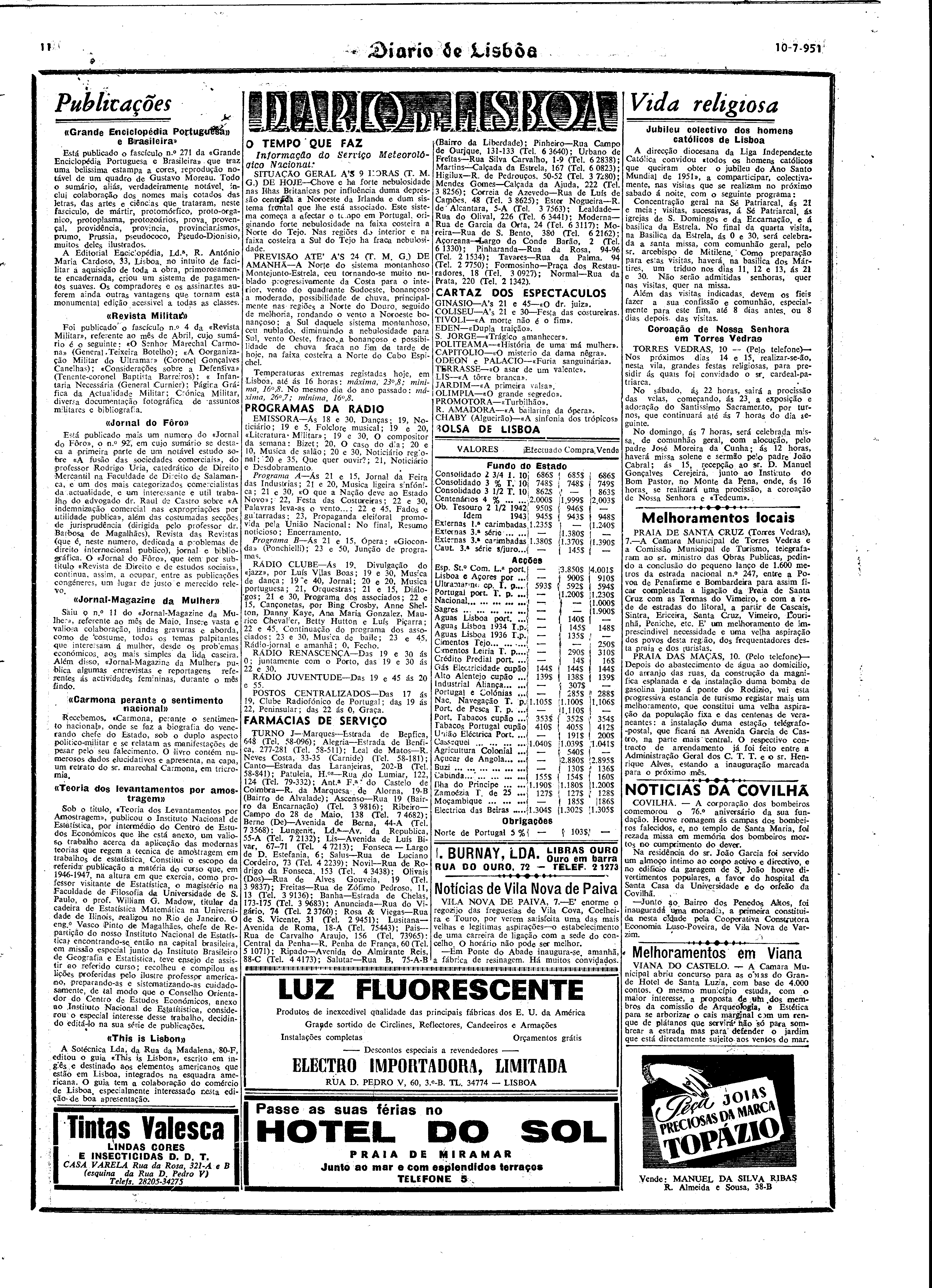 Instituição: Fundação Mário Soares e Maria Barroso Pasta: 06333.054.12911Título: Diário de LisboaNúmero: 10275Ano: 31Data: Terça, 10 de Julho de 1951Directores: Director: Joaquim MansoFundo: DRR - Documentos Ruella RamosTipo Documental: IMPRENSADireitos: A publicação, total ou parcial, deste documento exige prévia autorização da entidade detentora.