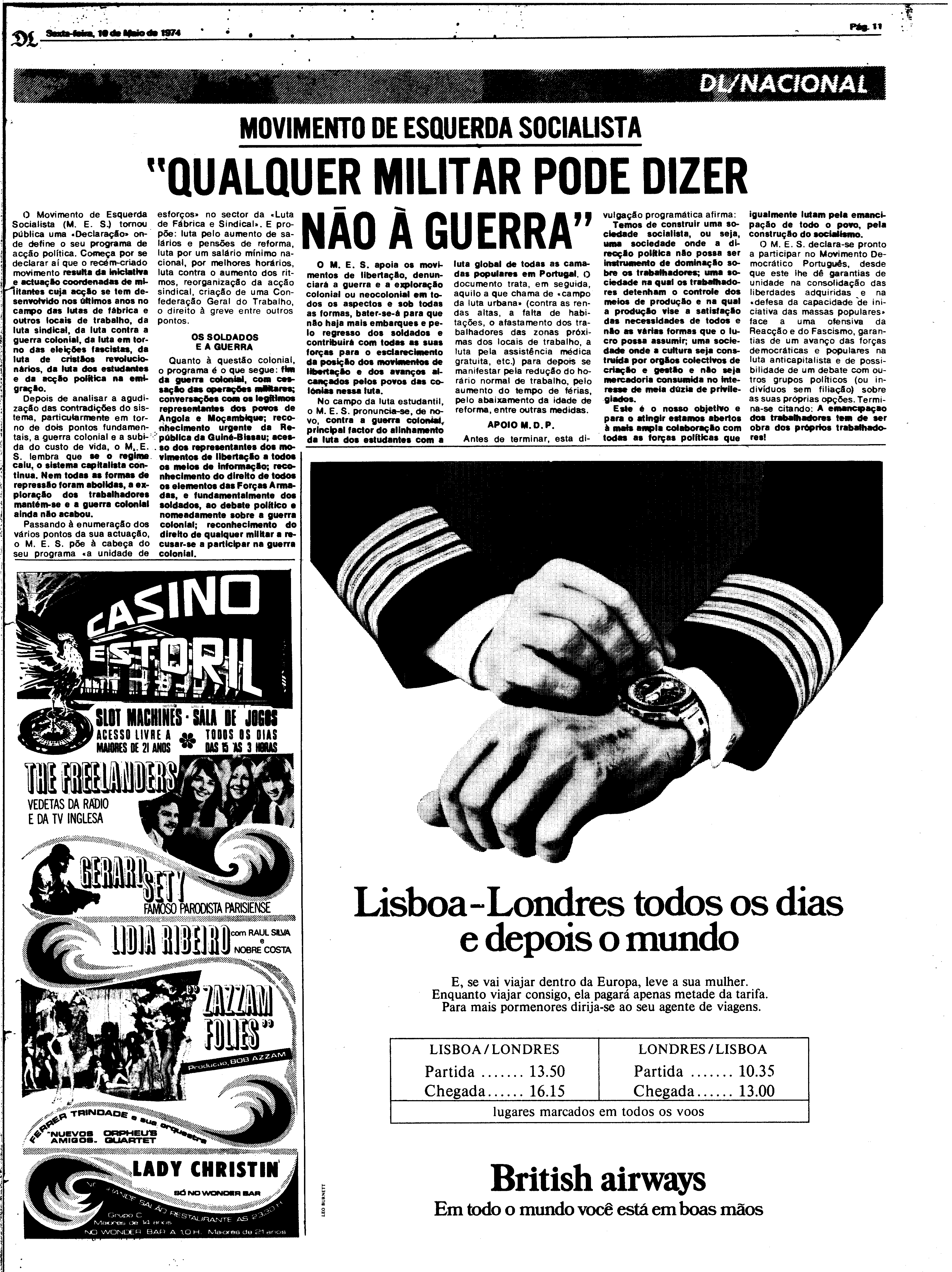(1974), "Diário de Lisboa", nº 18453, Ano 54, Sexta, 10 de Maio de 1974, Fundação Mário Soares / DRR - Documentos Ruella Ramos, Disponível HTTP: http://hdl.handle.net/11002/fms_dc_4915 (2025-12-17)