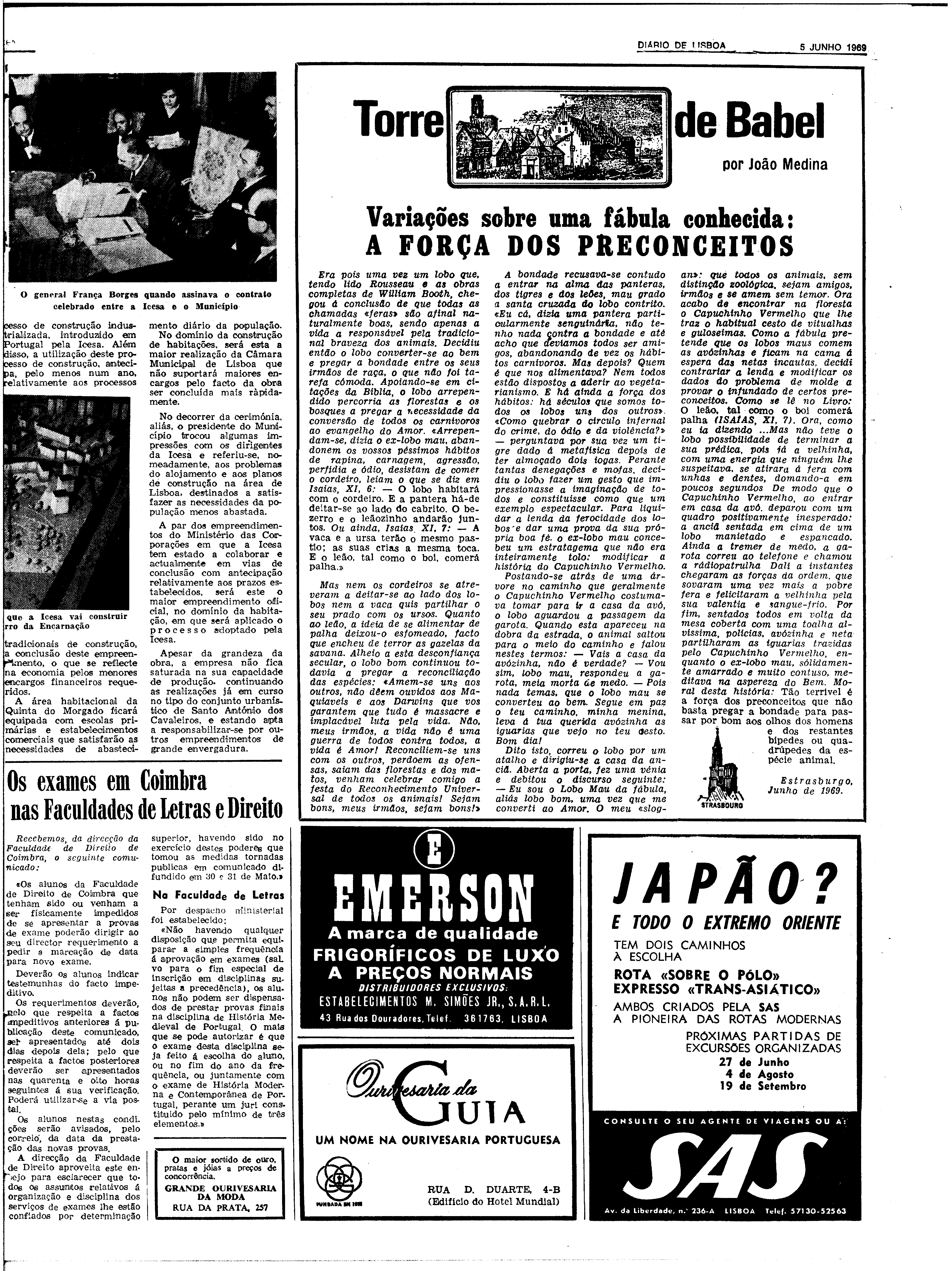 (1969), "Diário de Lisboa", nº 16688, Ano 49, Quinta, 5 de Junho de 1969, Fundação Mário Soares / DRR - Documentos Ruella Ramos, Disponível HTTP: http://hdl.handle.net/11002/fms_dc_7512 (2025-12-17)