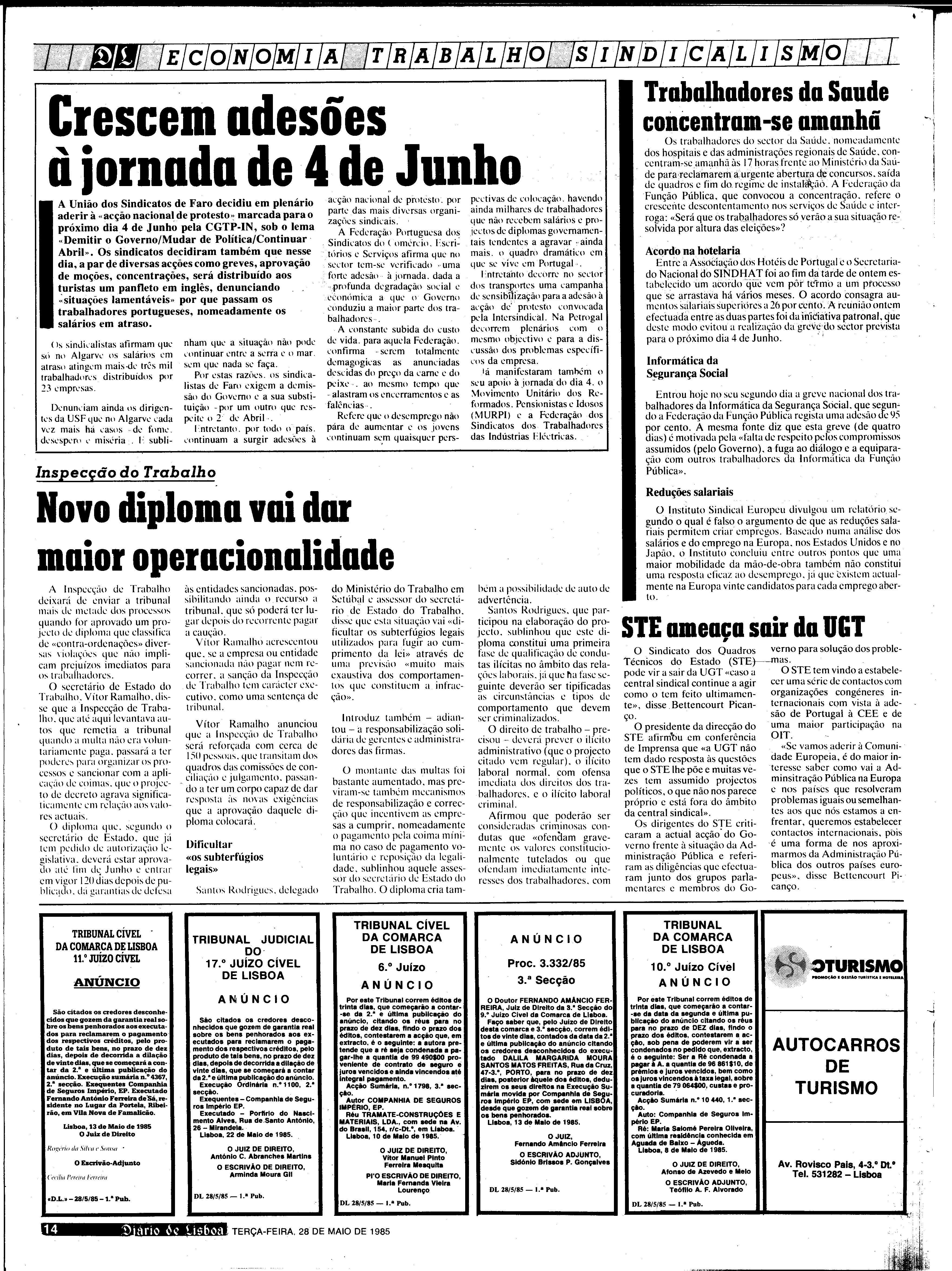 Instituição: Fundação Mário Soares e Maria Barroso Pasta: 06845.195.30254Título: Diário de LisboaNúmero: 21770Ano: 65Data: Terça, 28 de Maio de 1985Directores: Director: António Ruella Ramos; Director Adjunto: Fernando Piteira SantosObservações: Inclui supl. "Informática".Fundo: DRR - Documentos Ruella RamosTipo Documental: IMPRENSADireitos: A publicação, total ou parcial, deste documento exige prévia autorização da entidade detentora.