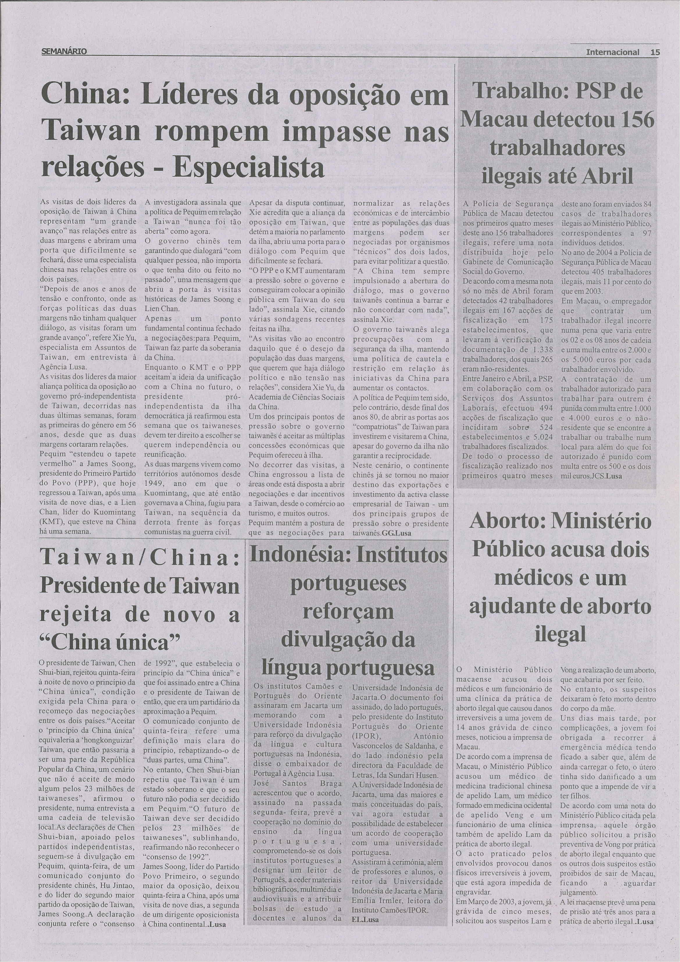 (2005), "Semanário", Sábado, 14 de Maio de 2005, Fundação Mário Soares / Arquivo da Resistência Timorense - Jornais Timor Telecom, Disponível HTTP: http://www.casacomum.org/cc/visualizador?pasta=10263.008 (2025-12-16)