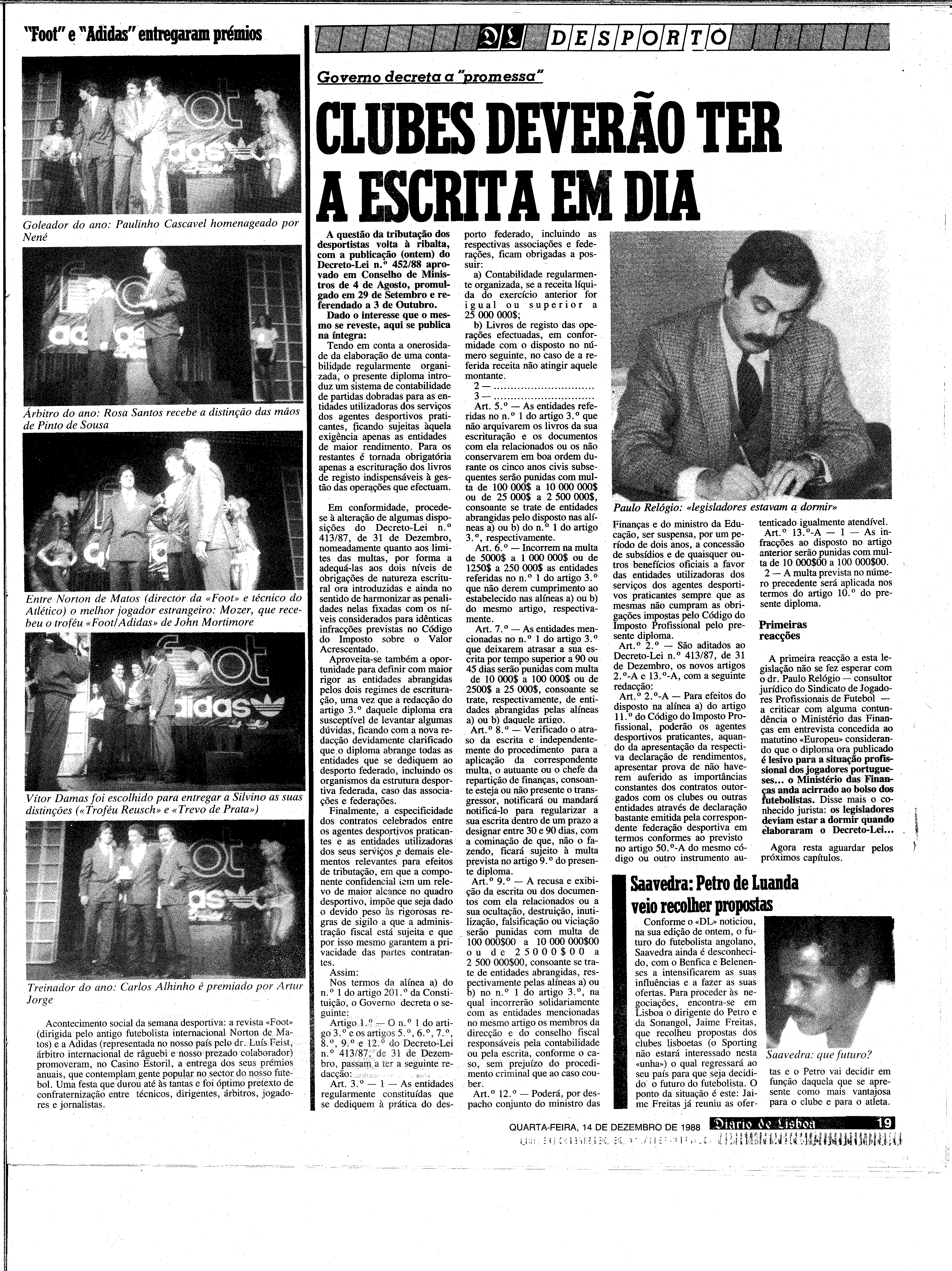 Instituição: Fundação Mário Soares e Maria Barroso Pasta: 06888.205.31323Título: Diário de LisboaNúmero: 22839Ano: 68Data: Quarta, 14 de Dezembro de 1988Directores: Director: António Ruella Ramos; Director Adjunto: Fernando Piteira SantosFundo: DRR - Documentos Ruella RamosTipo Documental: IMPRENSADireitos: A publicação, total ou parcial, deste documento exige prévia autorização da entidade detentora.
