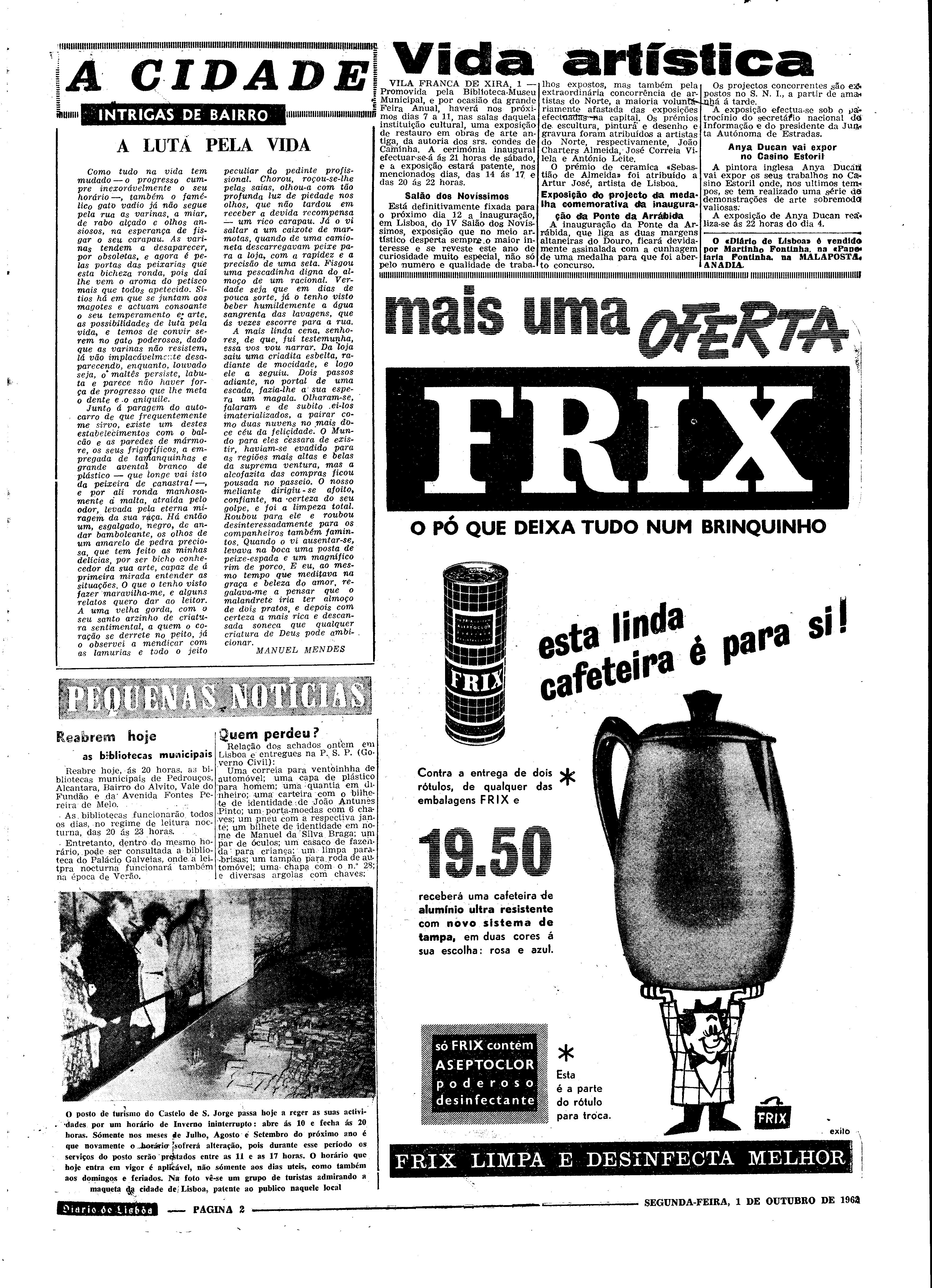 (1962), "Diário de Lisboa", nº 14297, Ano 42, Segunda, 1 de Outubro de 1962, Fundação Mário Soares / DRR - Documentos Ruella Ramos, Disponível HTTP: http://hdl.handle.net/11002/fms_dc_15997 (2025-12-19)