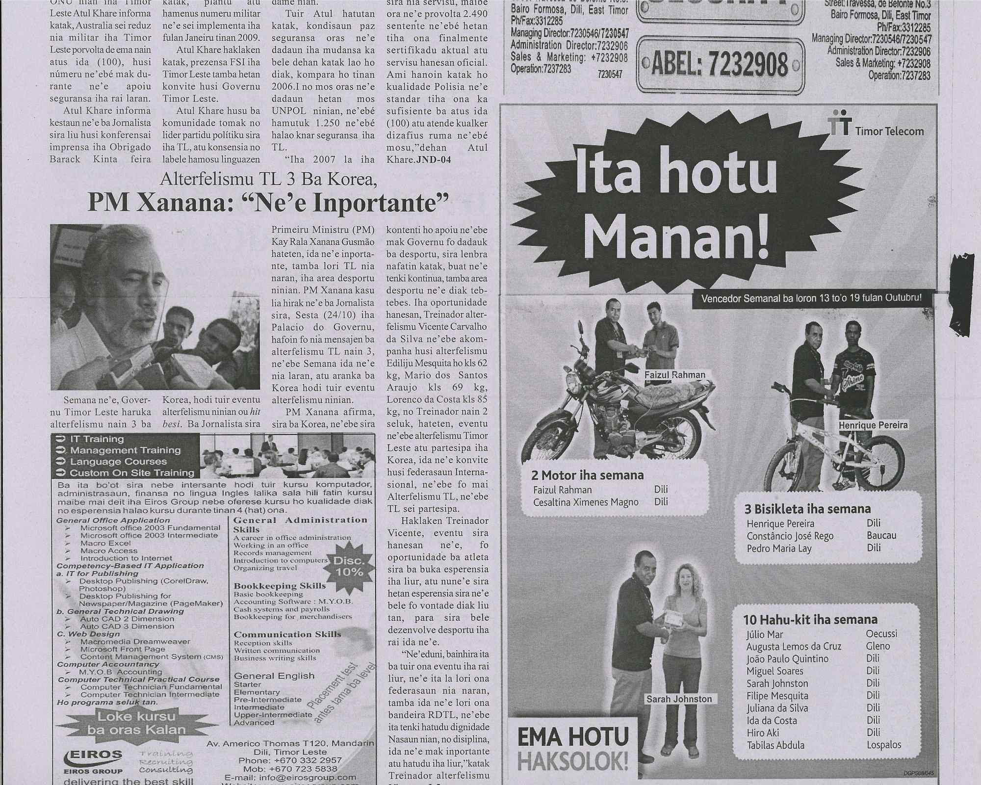 (2008), "Diário", Segunda, 27 de Outubro de 2008, Fundação Mário Soares / Arquivo da Resistência Timorense - Jornais Timor Telecom, Disponível HTTP: http://www.casacomum.org/cc/visualizador?pasta=10271.149 (2025-12-16)