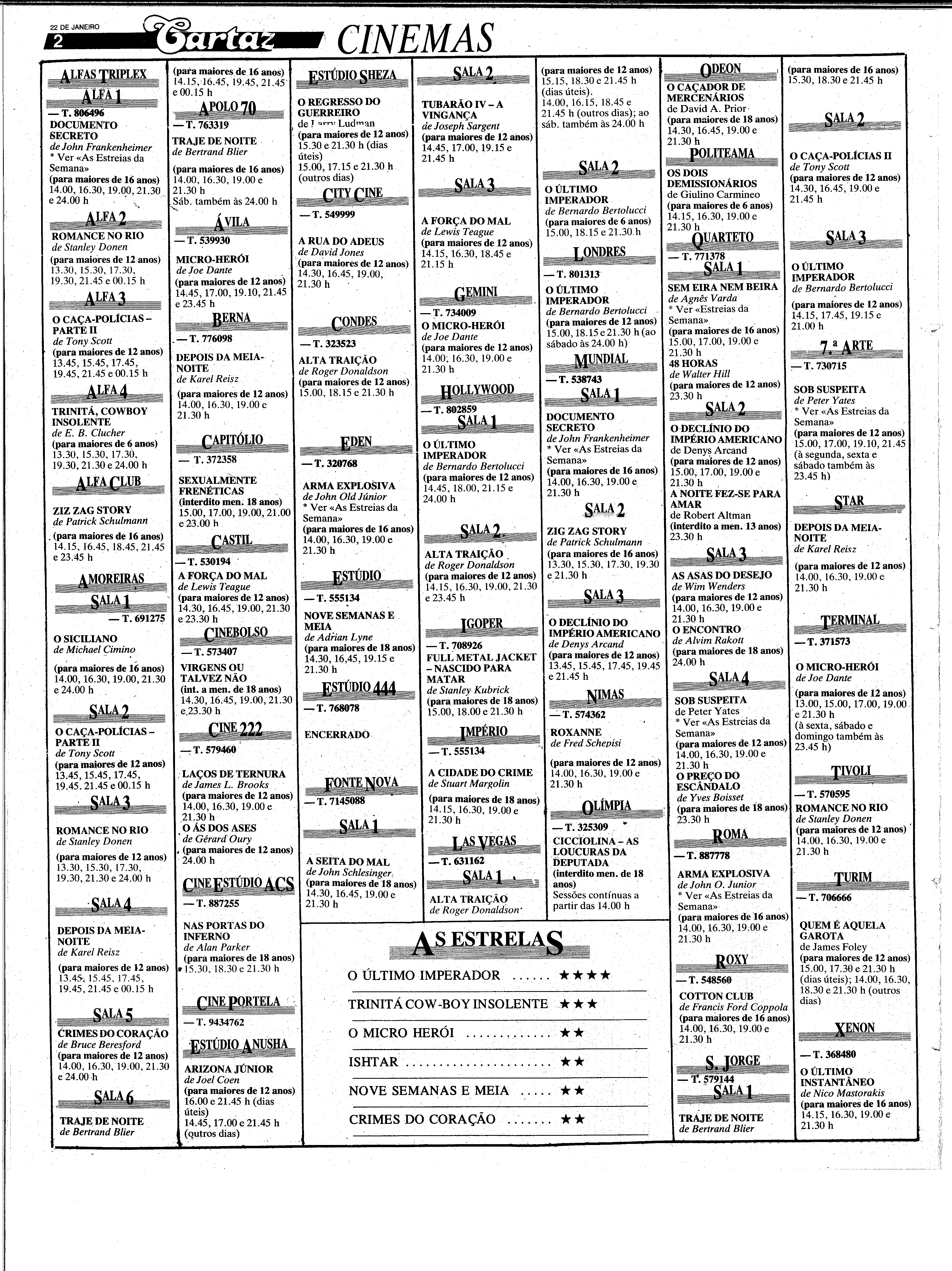 (1988), "Diário de Lisboa", nº 22570, Ano 67, Sexta, 22 de Janeiro de 1988, Fundação Mário Soares / DRR - Documentos Ruella Ramos, Disponível HTTP: http://hdl.handle.net/11002/fms_dc_918 (2025-12-17)
