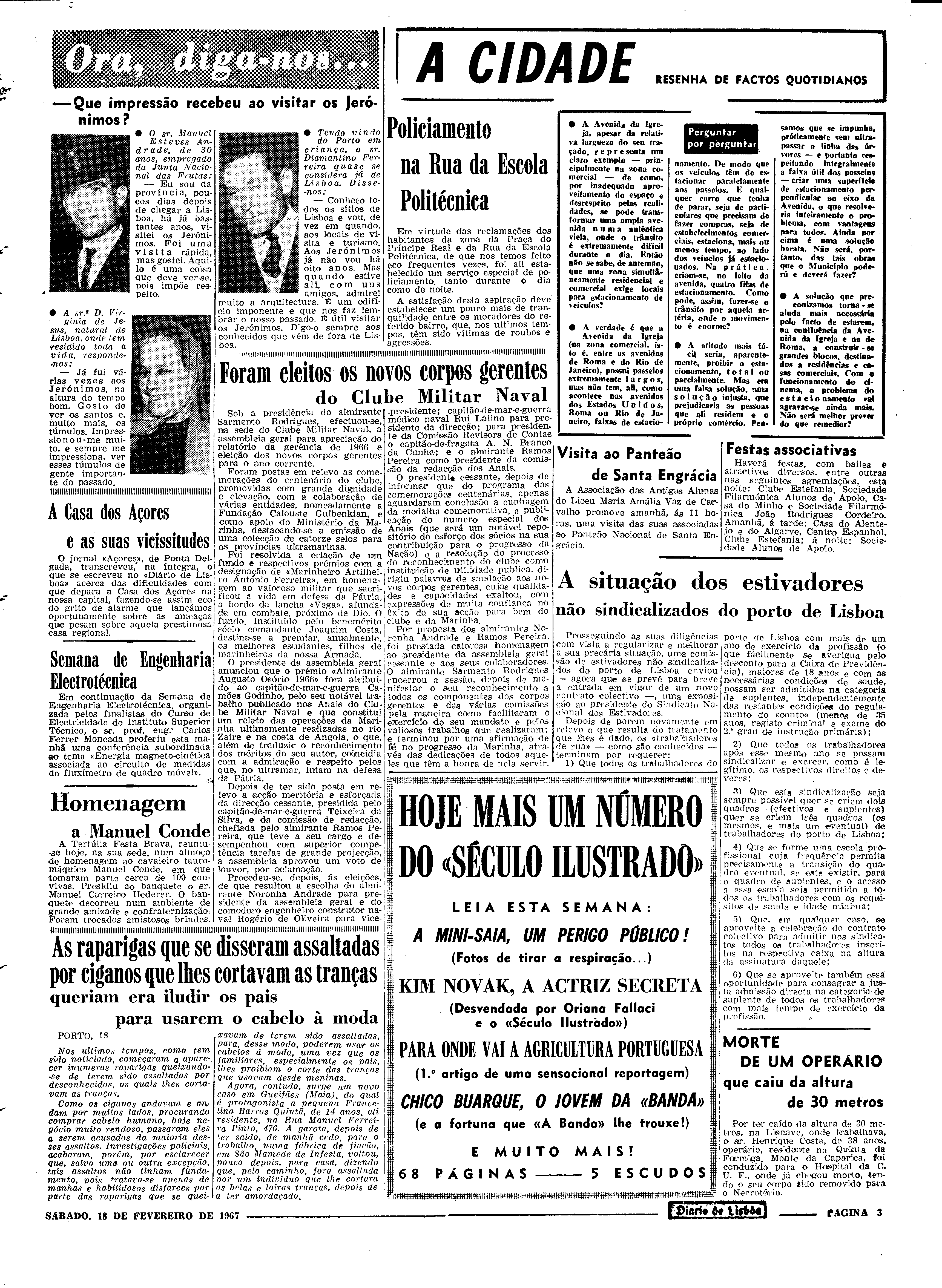 Instituição: Fundação Mário Soares e Maria Barroso Pasta: 06575.113.21061Título: Diário de LisboaNúmero: 15865Ano: 46Data: Sábado, 18 de Fevereiro de 1967Directores: Director: Norberto Lopes; Director Adjunto: Mário NevesEdição: 2ª ediçãoObservações: Inclui supl. "Diário de Lisboa Magazine".Fundo: DRR - Documentos Ruella RamosTipo Documental: IMPRENSADireitos: A publicação, total ou parcial, deste documento exige prévia autorização da entidade detentora.