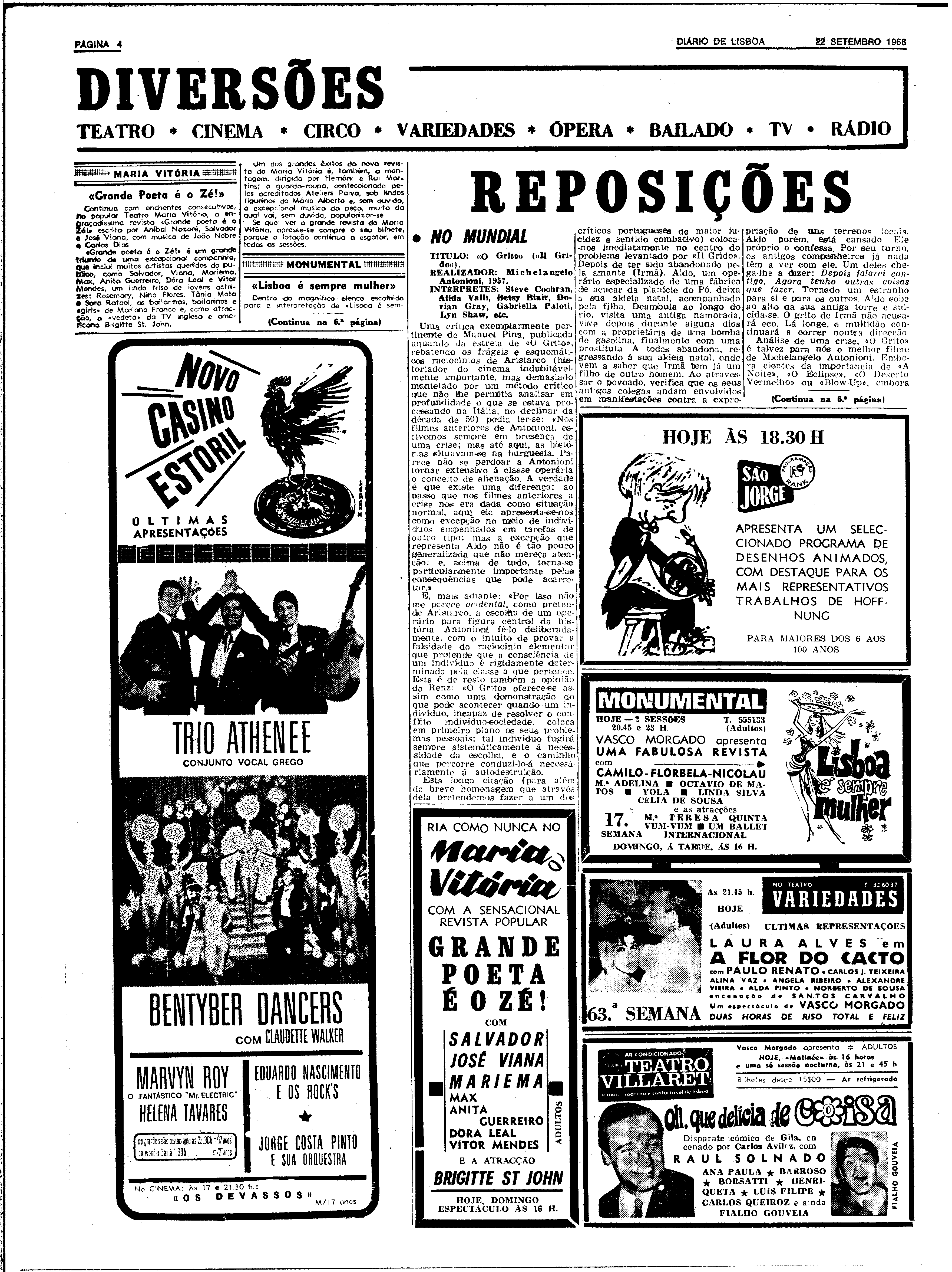 (1968), "Diário de Lisboa", nº 16438, Ano 48, Domingo, 22 de Setembro de 1968, Fundação Mário Soares / DRR - Documentos Ruella Ramos, Disponível HTTP: http://hdl.handle.net/11002/fms_dc_11721 (2025-12-16)