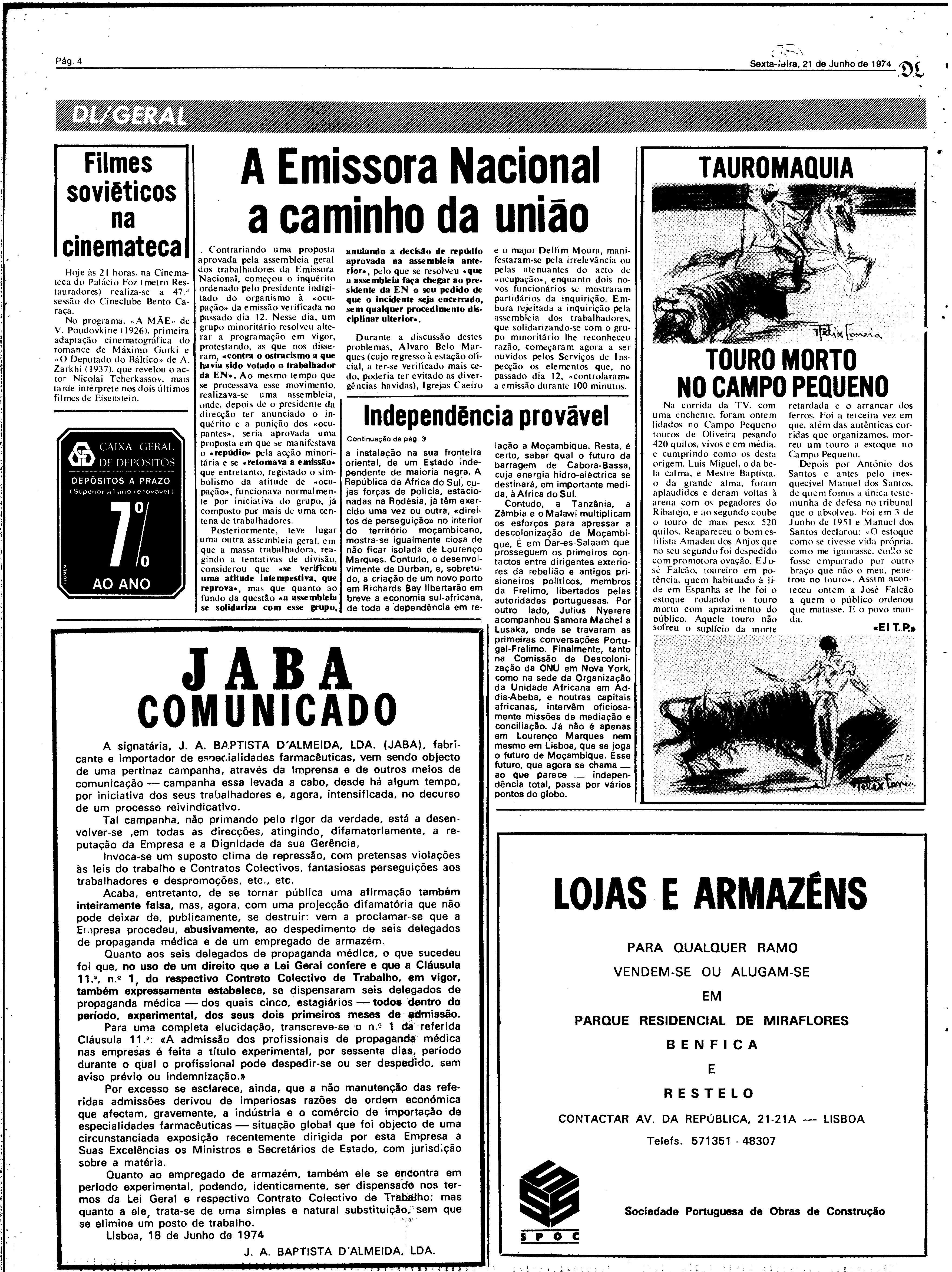 (1974), "Diário de Lisboa", nº 18491, Ano 54, Sexta, 21 de Junho de 1974, Fundação Mário Soares / DRR - Documentos Ruella Ramos, Disponível HTTP: http://hdl.handle.net/11002/fms_dc_4941 (2025-12-17)