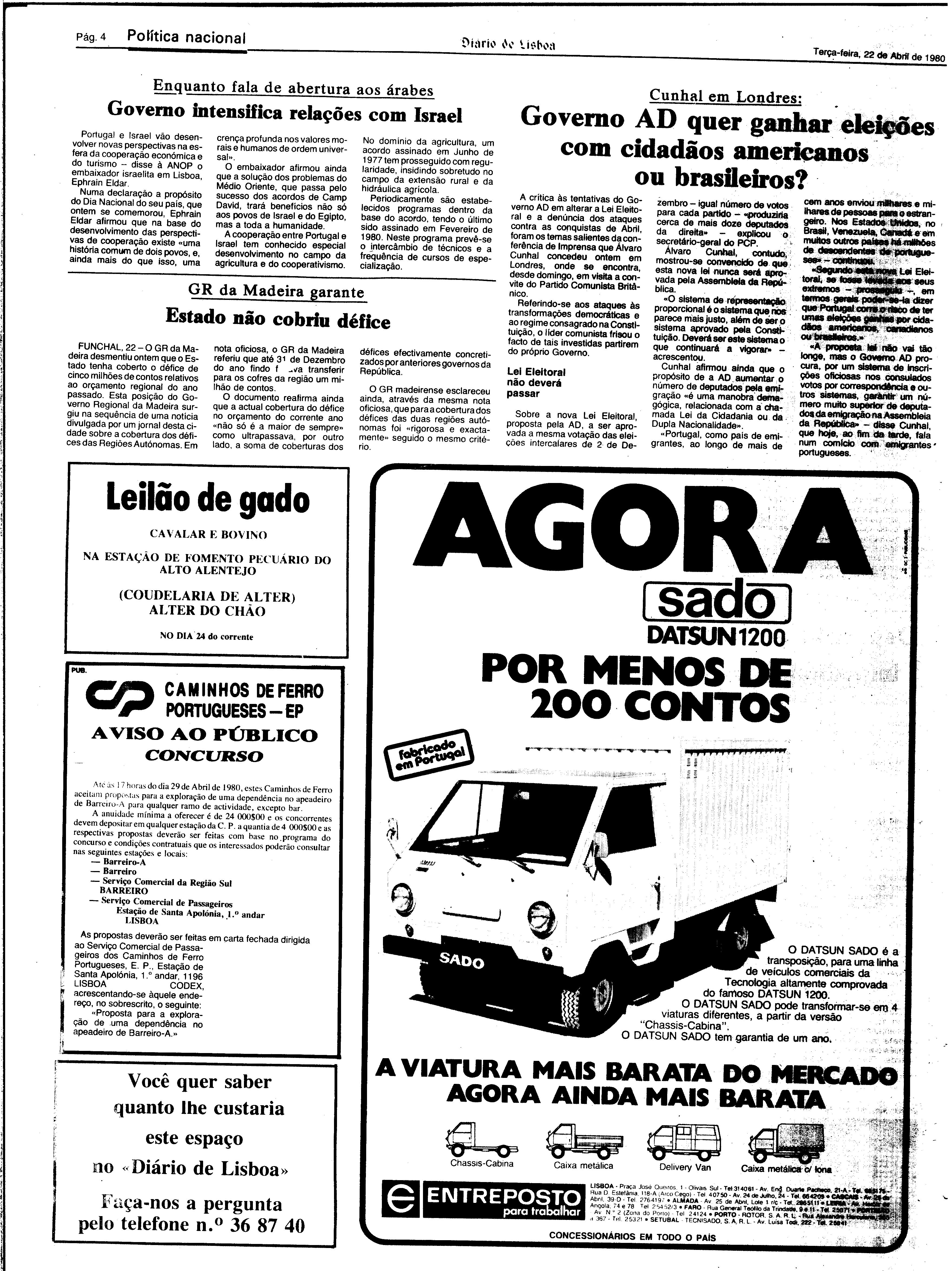 (1980), "Diário de Lisboa", nº 20237, Ano 60, Terça, 22 de Abril de 1980, Fundação Mário Soares / DRR - Documentos Ruella Ramos, Disponível HTTP: http://hdl.handle.net/11002/fms_dc_2969 (2025-12-17)