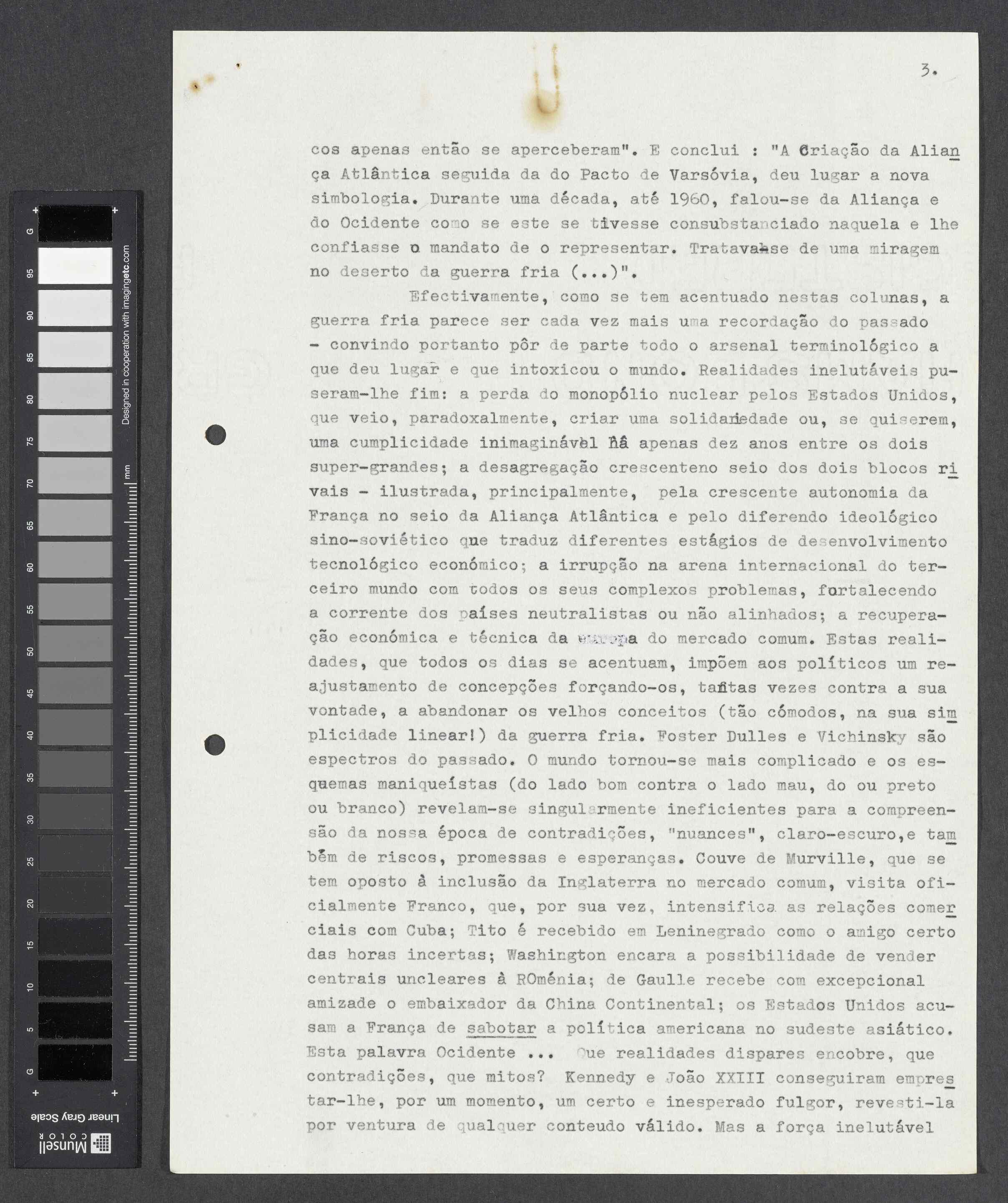 Instituição: Fundação Mário Soares e Maria Barroso Pasta: 02263.015.008Título: Fogo Solto… por Mário Soares - Justa Homenagem; Variações sobre o OcidenteAssunto: Recorte com crónica de Mário Soares para o jornal República. Contém versão manuscrita e datilografada do texto.Data: domingo, 17 de maio de 1964Fundo: Mário SoaresTipo Documental: DocumentosDireitos: A publicação, total ou parcial, deste documento exige prévia autorização da entidade detentora.