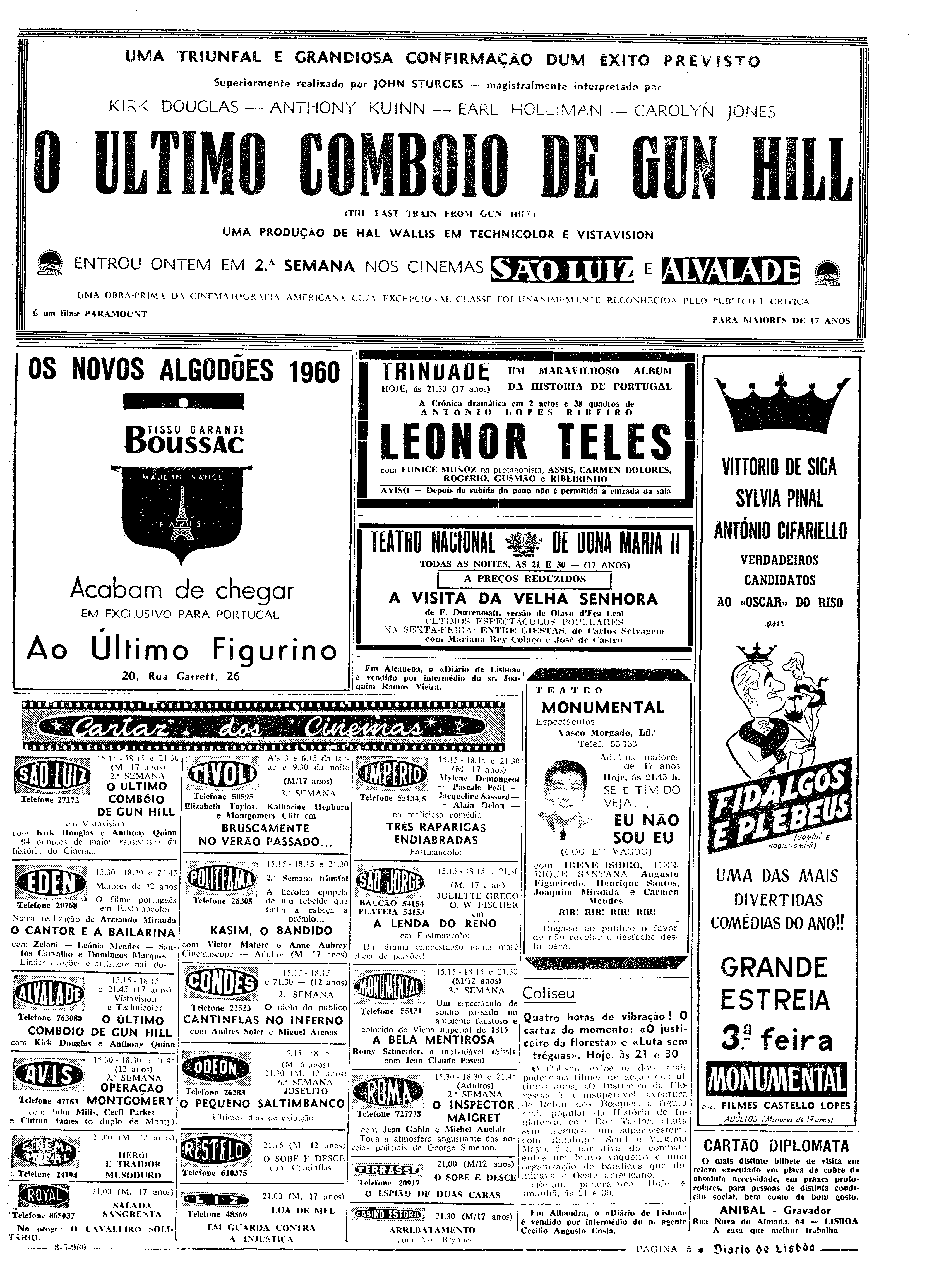 Instituição: Fundação Mário Soares e Maria Barroso Pasta: 06539.077.16746Título: Diário de LisboaNúmero: 13438Ano: 40Data: Domingo, 8 de Maio de 1960Directores: Director: Norberto Lopes; Director Adjunto: Mário NevesEdição: 1ª ediçãoFundo: DRR - Documentos Ruella RamosTipo Documental: IMPRENSADireitos: A publicação, total ou parcial, deste documento exige prévia autorização da entidade detentora.
