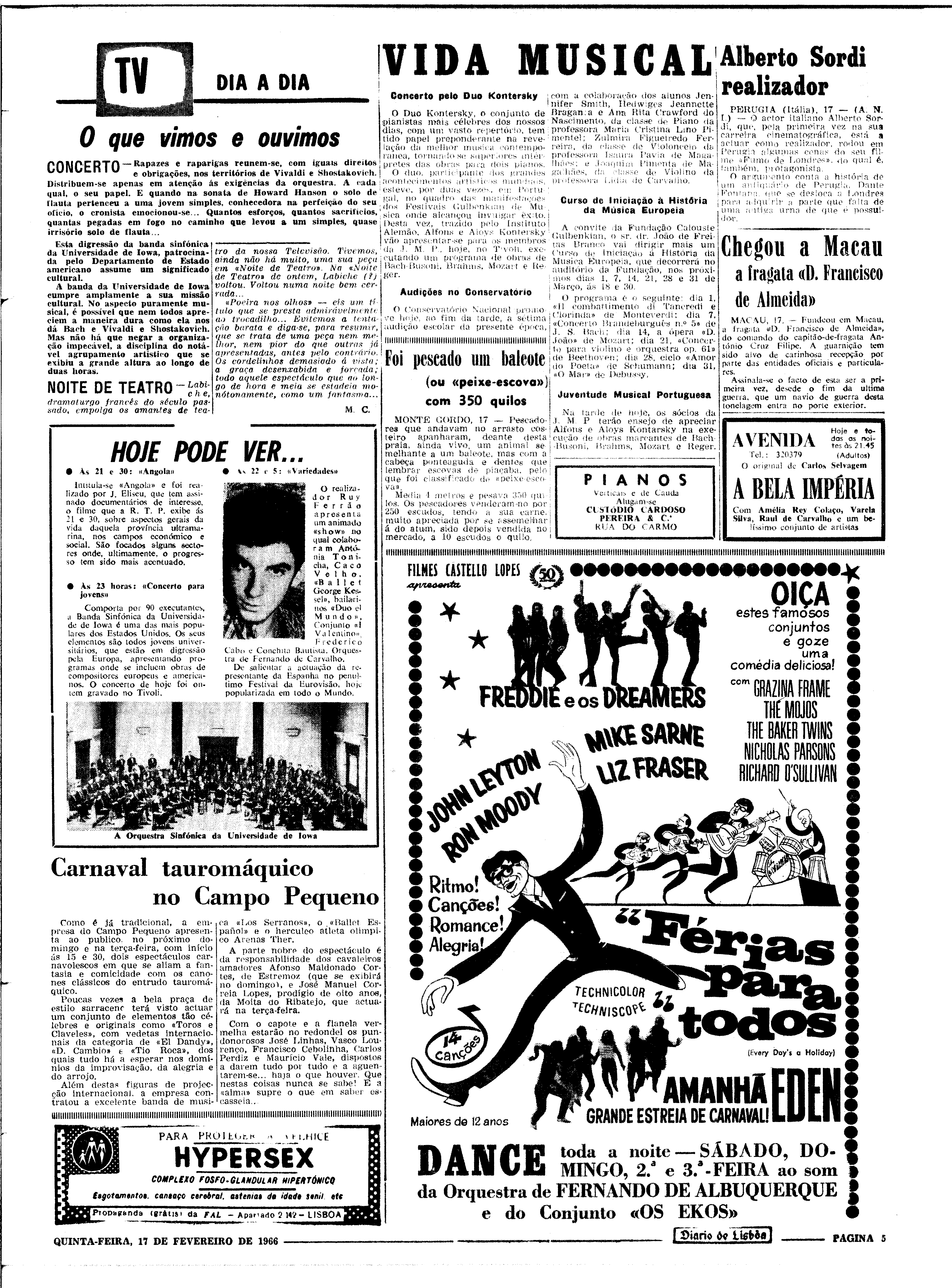 (1966), "Diário de Lisboa", nº 15507, Ano 45, Quinta, 17 de Fevereiro de 1966, Fundação Mário Soares / DRR - Documentos Ruella Ramos, Disponível HTTP: http://hdl.handle.net/11002/fms_dc_13727 (2025-12-17)