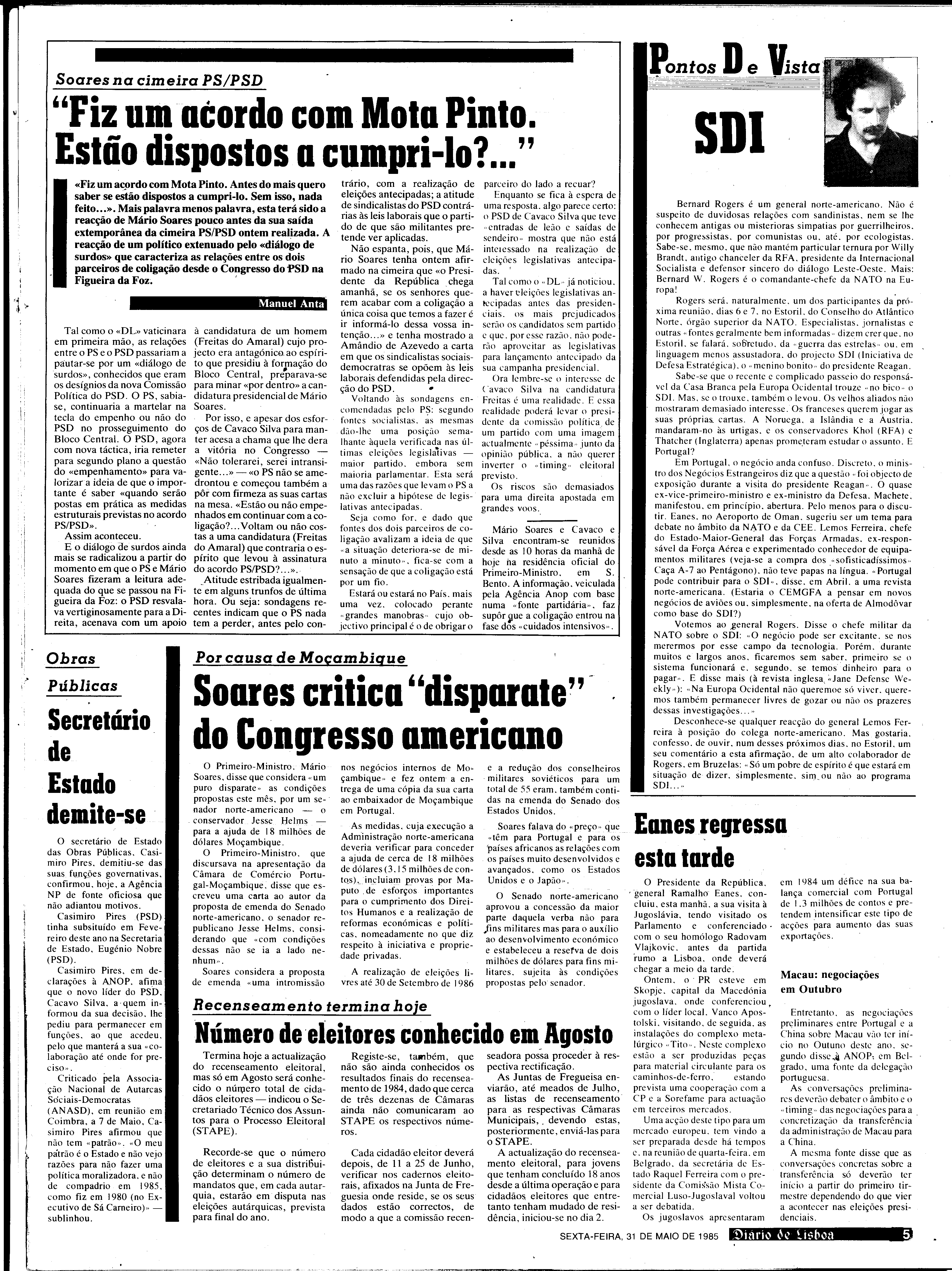 (1985), "Diário de Lisboa", nº 21773, Ano 65, Sexta, 31 de Maio de 1985, Fundação Mário Soares / DRR - Documentos Ruella Ramos, Disponível HTTP: http://hdl.handle.net/11002/fms_dc_1397 (2025-12-17)