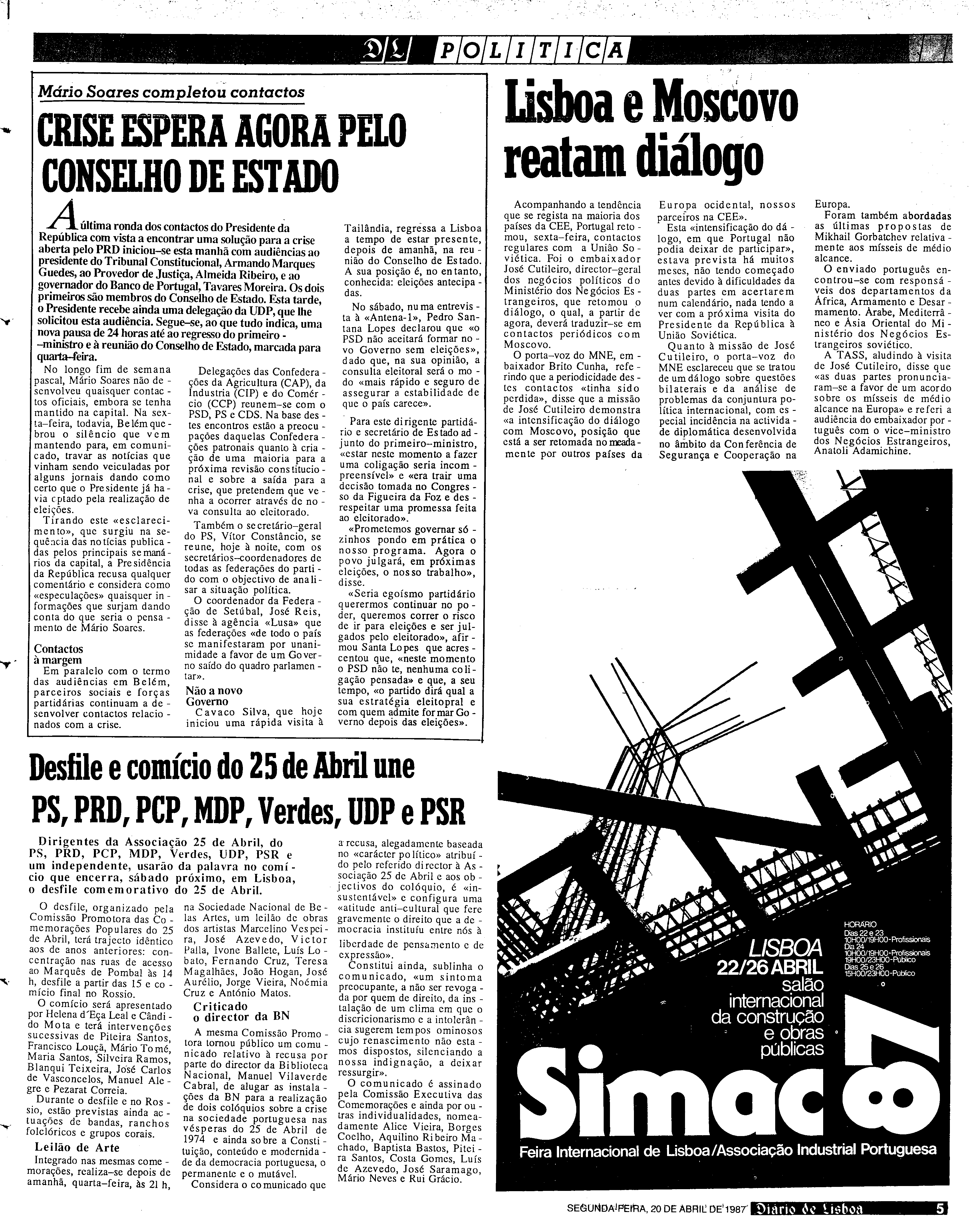 (1987), "Diário de Lisboa", nº 22343, Ano 67, Segunda, 20 de Abril de 1987, Fundação Mário Soares / DRR - Documentos Ruella Ramos, Disponível HTTP: http://hdl.handle.net/11002/fms_dc_1043 (2025-12-17)