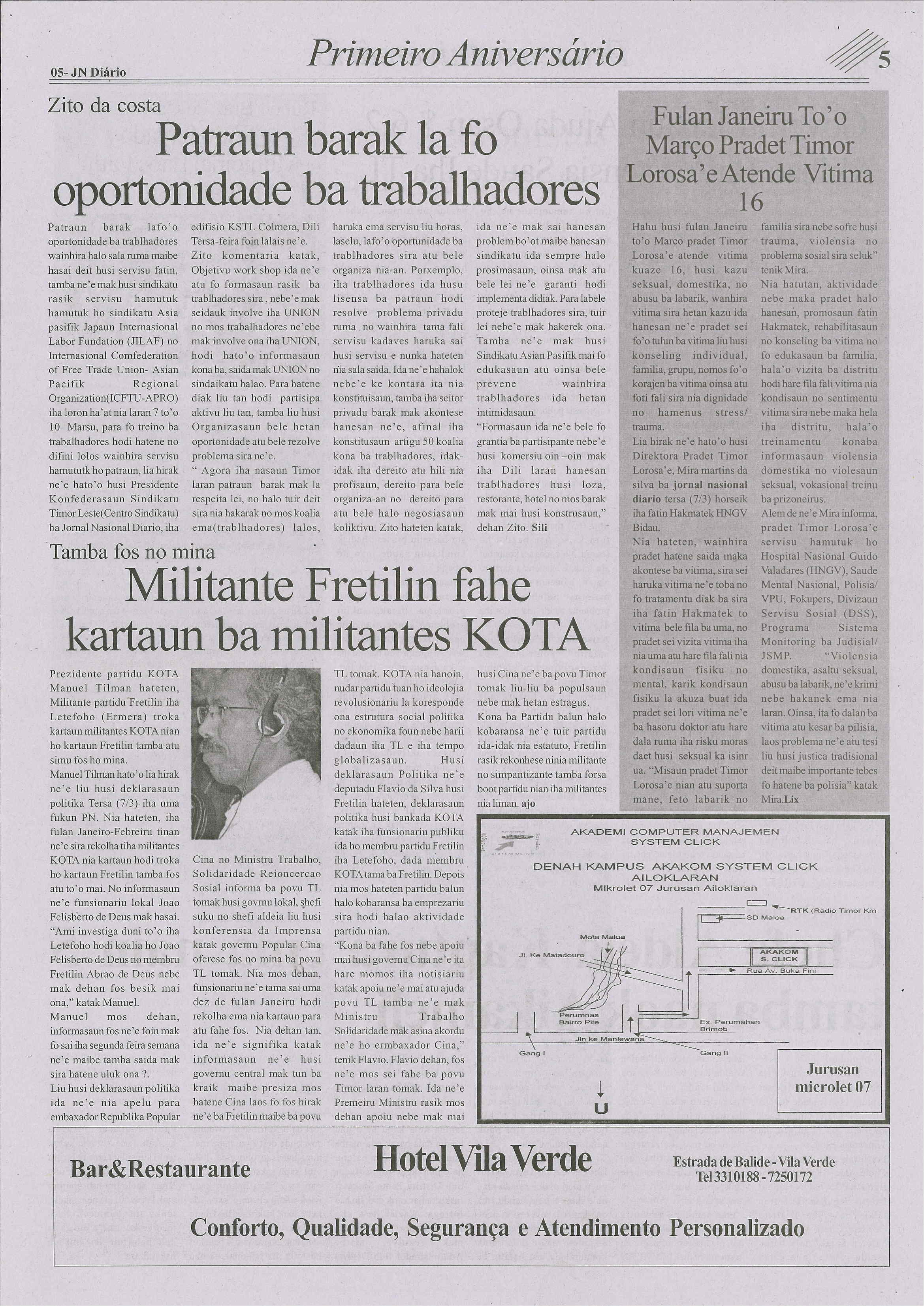 (2006), "Diário", Quarta, 8 de Março de 2006, Fundação Mário Soares / Arquivo da Resistência Timorense - Jornais Timor Telecom, Disponível HTTP: http://www.casacomum.org/cc/visualizador?pasta=10268.041 (2025-12-17)