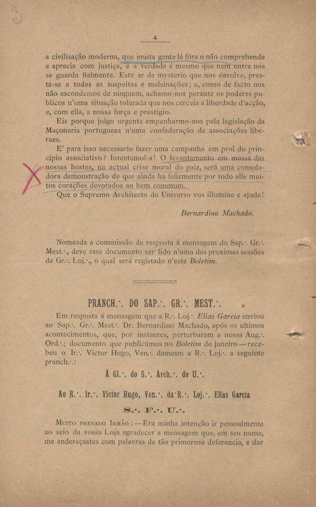 Instituição: Fundação Mário Soares e Maria Barroso Pasta: 04500.001.003Título: Boletim Oficial do Grande Oriente Lusitano UnidoSérie: 1897Data: Segunda, 1 de Fevereiro de 1897Fundo: DCD - Documentos Carvalhão Duarte/Simões RaposoTipo Documental: IMPRENSADireitos: A publicação, total ou parcial, deste documento exige prévia autorização da entidade detentora.