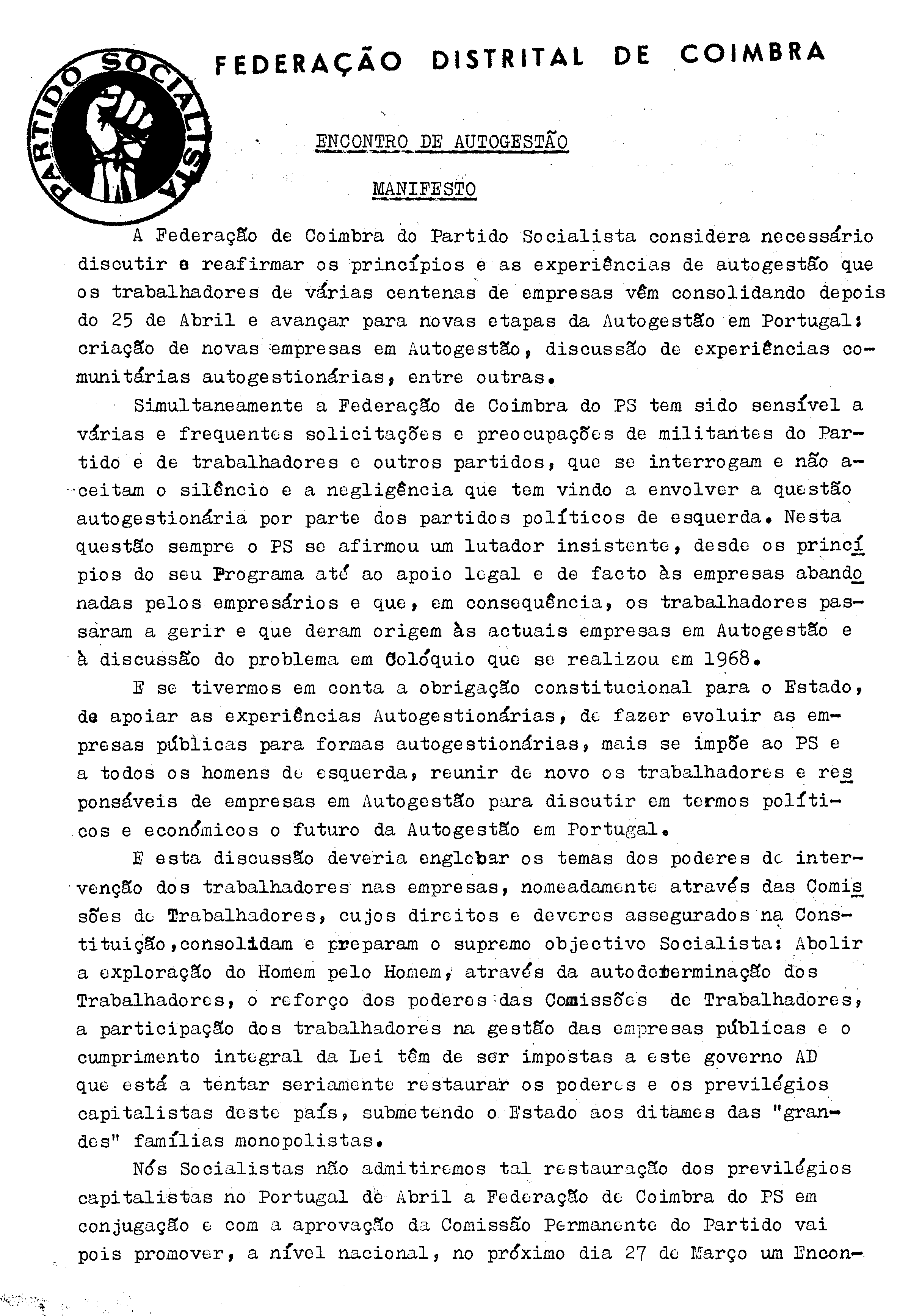 (1982), "Encontro Nacional de Autogestão, organizado pela Federação Distrital de Coimbra do PS", Fundação Mário Soares / Francisco Marcelo Curto, Disponível HTTP: http://hdl.handle.net/11002/fms_dc_55035 (2025-12-17)