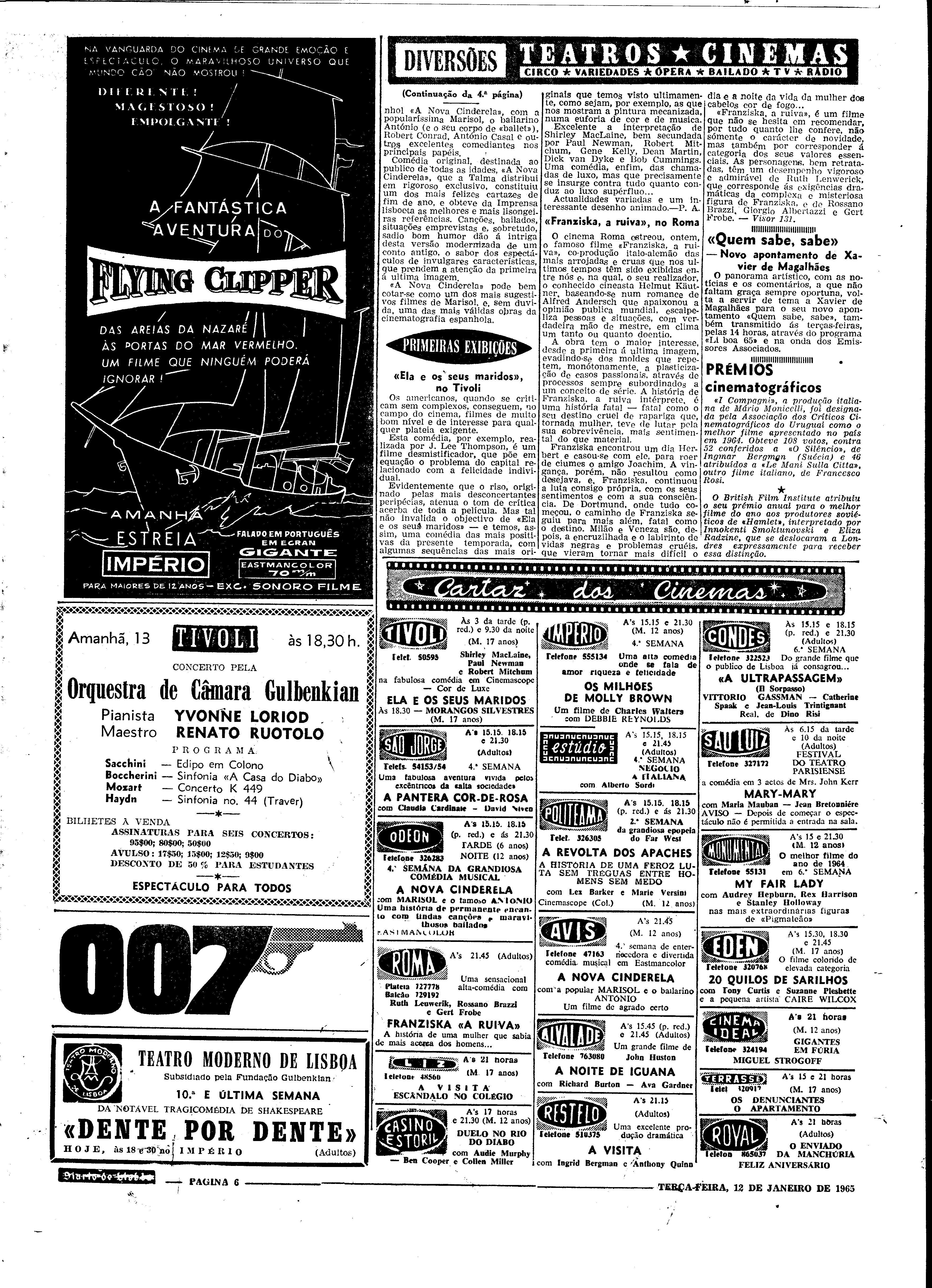 Instituição: Fundação Mário Soares e Maria Barroso Pasta: 06557.095.19317Título: Diário de LisboaNúmero: 15113Ano: 44Data: Terça, 12 de Janeiro de 1965Directores: Director: Norberto Lopes; Director Adjunto: Mário NevesEdição: 1ª ediçãoObservações: Inclui supl. "Diário de Lisboa Juvenil".Fundo: DRR - Documentos Ruella RamosTipo Documental: IMPRENSADireitos: A publicação, total ou parcial, deste documento exige prévia autorização da entidade detentora.
