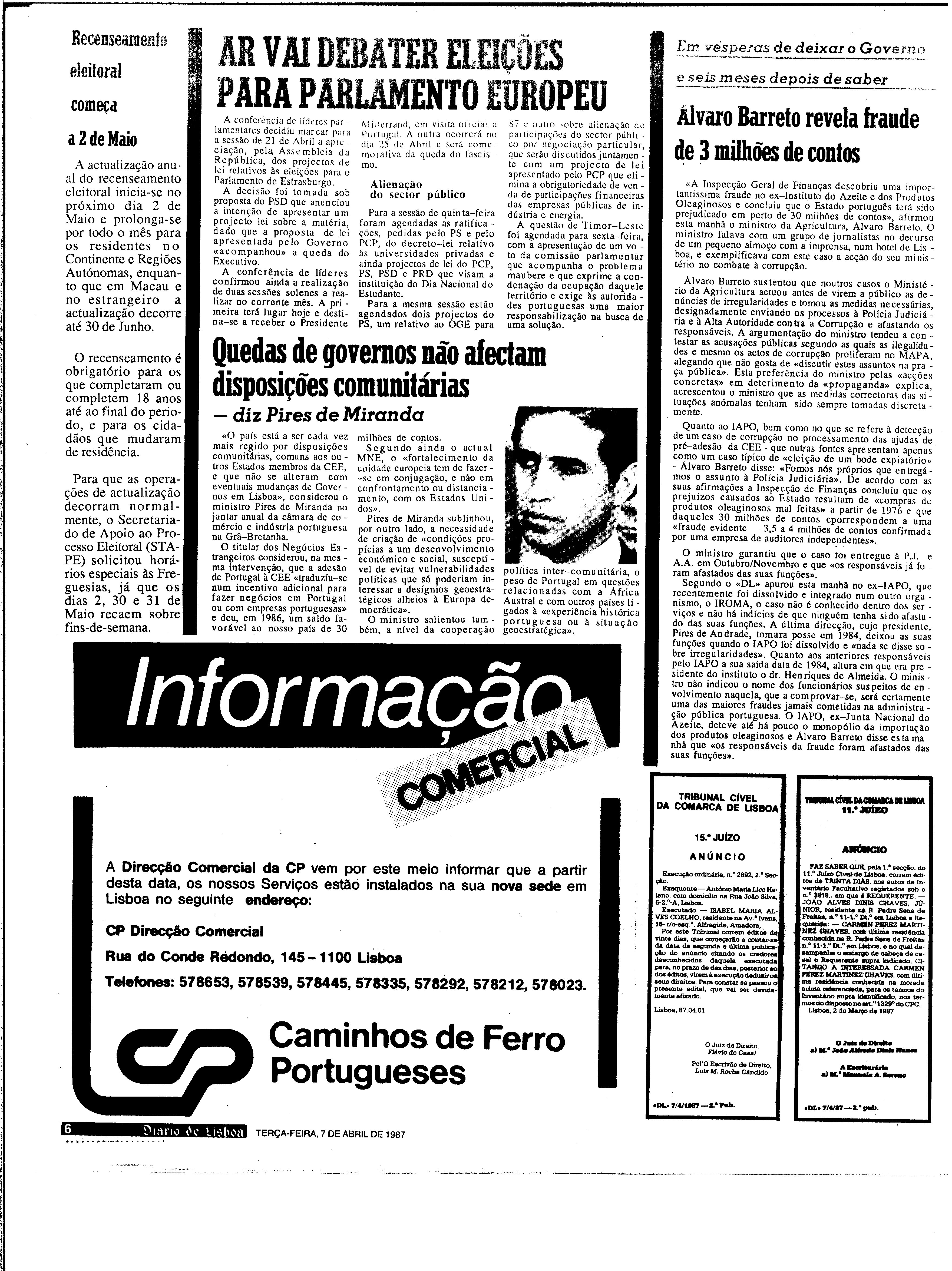(1987), "Diário de Lisboa", nº 22333, Ano 67, Terça, 7 de Abril de 1987, Fundação Mário Soares / DRR - Documentos Ruella Ramos, Disponível HTTP: http://hdl.handle.net/11002/fms_dc_1033 (2025-12-17)