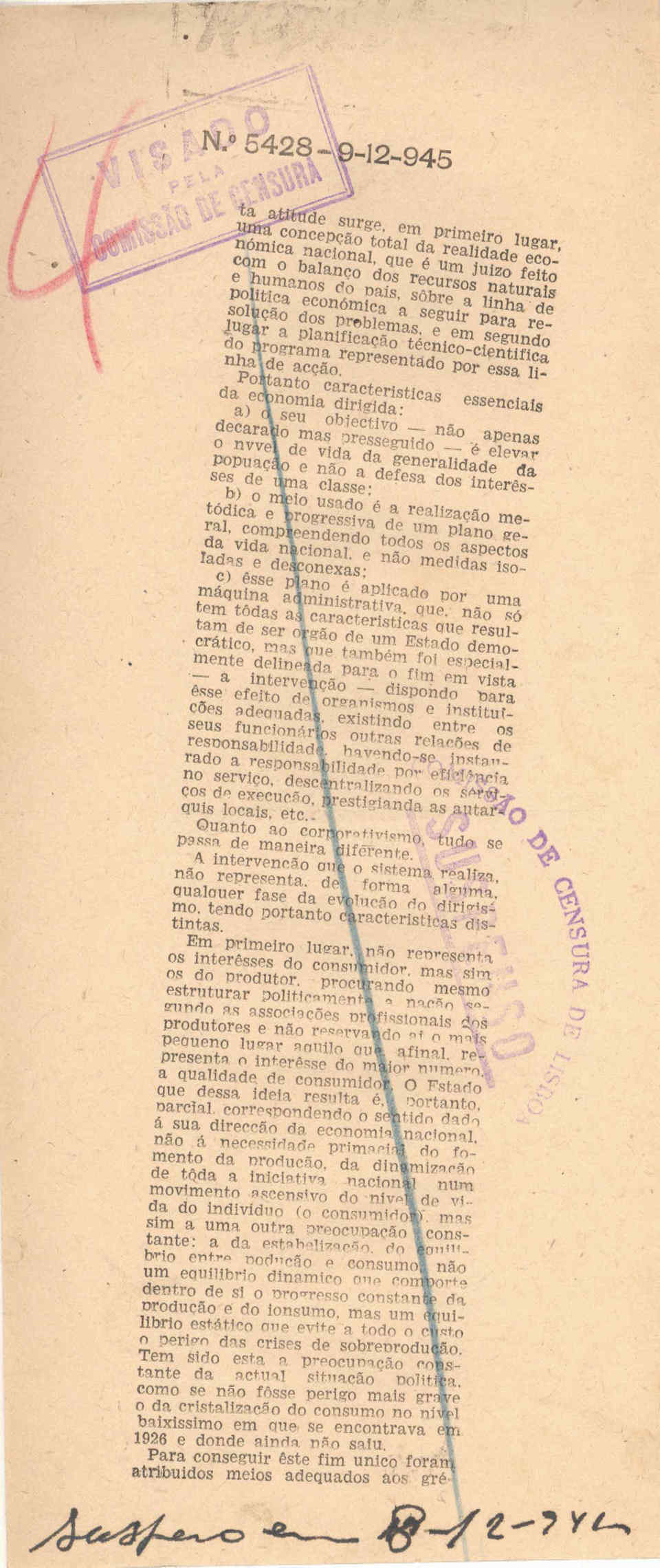 Instituição: Fundação Mário Soares e Maria Barroso Pasta: 04528.167Título: RepúblicaAssunto: Economia Dirigida e CorporativismoAutor do artigo: Nuno Fidelino de FigueiredoData: Sábado, 8 de Dezembro de 1945Observações: Duas provas da mesma coluna, uma delas incompletaFundo: DCD - Documentos Carvalhão DuarteTipo Documental: IMPRENSADireitos: A publicação, total ou parcial, deste documento exige prévia autorização da entidade detentora.