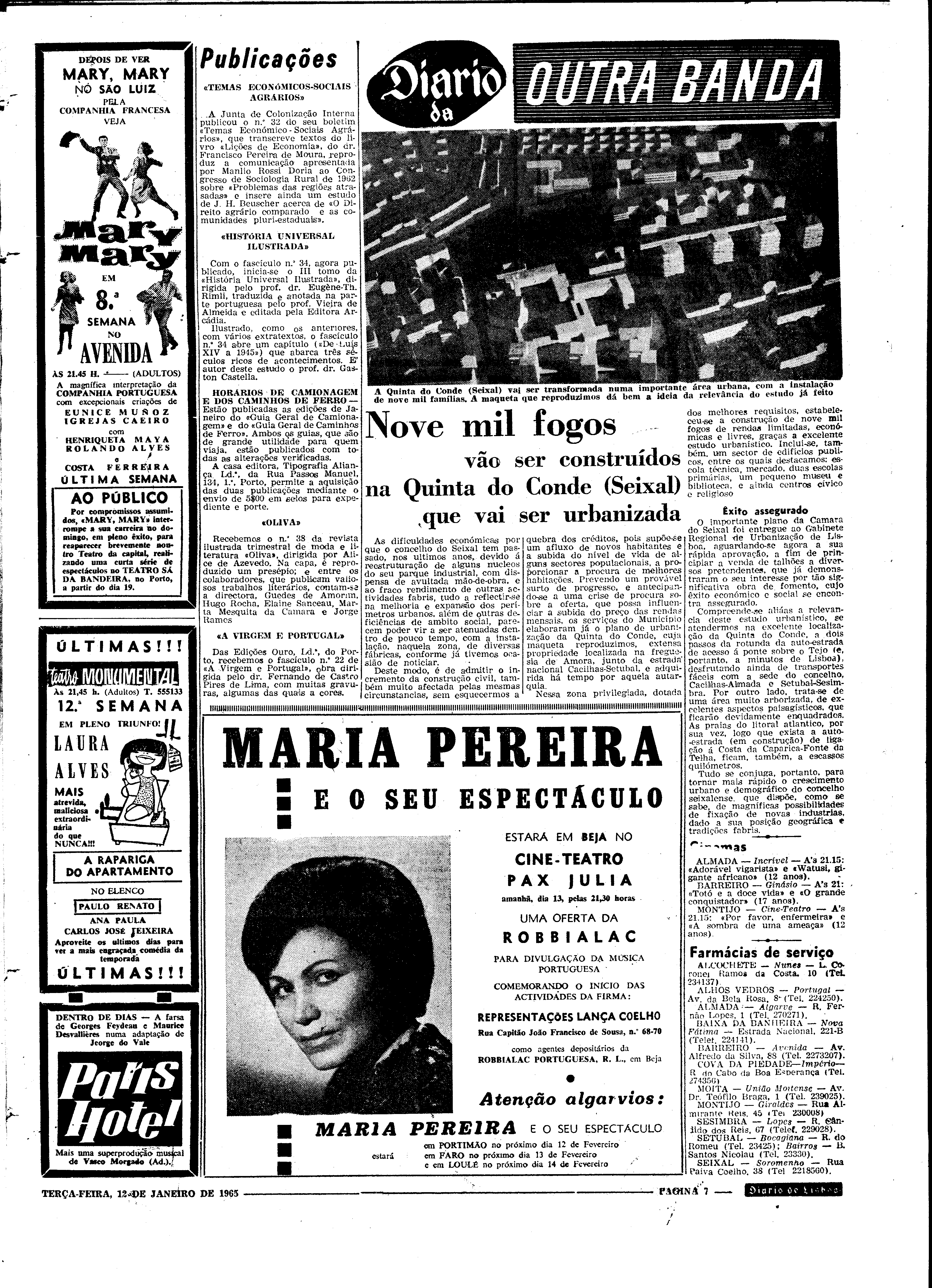 Instituição: Fundação Mário Soares e Maria Barroso Pasta: 06557.095.19317Título: Diário de LisboaNúmero: 15113Ano: 44Data: Terça, 12 de Janeiro de 1965Directores: Director: Norberto Lopes; Director Adjunto: Mário NevesEdição: 1ª ediçãoObservações: Inclui supl. "Diário de Lisboa Juvenil".Fundo: DRR - Documentos Ruella RamosTipo Documental: IMPRENSADireitos: A publicação, total ou parcial, deste documento exige prévia autorização da entidade detentora.