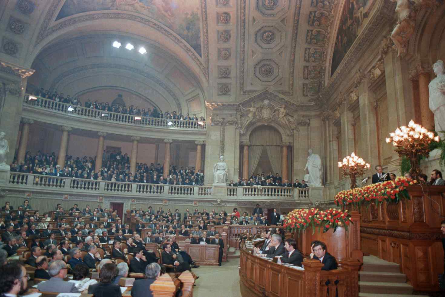 Instituição: Fundação Mário Soares e Maria Barroso Pasta: 05157.020Assunto: Sessão solene de tomada de posse de Mário Soares no cargo de Presidente da República, na Assembleia da República. Aspeto do hemiciclo. Concentração junto à entrada do edifício para receber Mário Soares.Inscrições: PR MARIO SOARES TOMADA DE POSSE MARÇO 86Data: domingo, 9 de março de 1986Negativo/Positivo: NegativoPB/Cor: CorFundo: AMS - Arquivo Mário SoaresTipo Documental: FotografiasDireitos: A publicação, total ou parcial, deste documento exige prévia autorização da entidade detentora.