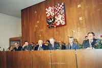 Pasta: 05121.055Assunto: Visita à República Checa; alocução do PR Mário Soares no parlamento checo; Durão Barroso, Ministro dos Negócios Estrangeiros; Ferro Rodrigues (Partido Socialista - PS); Rui Alarcão, Reitor da Universidade de Coimbra; passeio pelas ruas de Praga; Maria Barroso Soares, esposa do PR; travessia da Ponte Carlos; arco-íris sobre Praga; revista às tropas checas; Václav Havel, Presidente checo; apresentação de cumprimentos pela comitiva portuguesa; Jorge Listopad, encenador e escritor.Data: Novembro de 1994Fundo: AMS - Arquivo Mário SoaresTipo Documental: Fotografias Página(s): 35