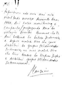 Pasta: 11027.082Assunto: Violação de direitos humanosData: 1996Fundo: Arquivo da Resistência Timorense - Konis SantanaTipo Documental: Correspondencia Página(s): 19