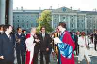Pasta: 05120.023Assunto: Visita à República da Irlanda; doutoramento "Honoris Causa" de Mário Soares na Trinity College (Universidade de Dublin); Mário Soares vestindo o traje cerimonial (toga e chapéu) na "Provost´s House"; troca de ofertas; passagem da "Provost´s House" para a sala dos Exames; elementos do Senado da Universidade; cerimónia de doutoramento na Sala dos Exames da Universidade.Data: Terça, 1 de Junho de 1993 - Sexta, 4 de Junho de 1993Fundo: AMS - Arquivo Mário SoaresTipo Documental: Fotografias Página(s): 33