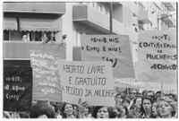Pasta: 07311.092.006Assunto: Manifestação contra o aumento do custo de vida, organizada pela União de Mulheres Alternativa e Resposta (UMAR). Pode ler-se nos cartazes "Direito ao nosso corpo"; "Planeamento familiar para não abortar. Legalização do aborto para não morrer"; "Aborto livre e gratuito a pedido da mulher"; "Perdão, mas o corpo é meu!" e "Aborto contracepção as mulheres decidirão".Autor: Carlos GilInscrições: Informação original: 25 Abril: 30 Anos / 25 de Abril (conjunto); 25 de Abril de 1974. Chegada de Mário Soares a Santa Apolónia (folha de fotografias).Data: quinta, 31 de março de 1977Tipo Documental: Fotografias Página(s): 1
