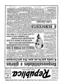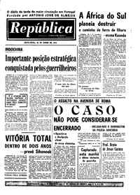 Pasta: 04420.002Título: RepúblicaData: Quinta, 4 de Julho de 1968Fundo: DBC - Documentos Bento de Jesus CaraçaTipo Documental: IMPRENSA Página(s): 15 (14 Imagens, 1 PDF)