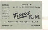 Pasta: 07070.116.023Título: CartãoAssunto: Cartão "Tissus K. M.", com apontamento no verso.Data: Segunda, 3 de Outubro de 1960Fundo: DAC - Documentos Amílcar CabralTipo Documental: Documentos Página(s): 2
