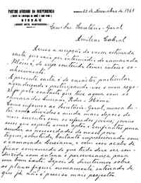 Pasta: 07063.036.041Assunto: Honório Sanches Vaz.Remetente: Zain LopesDestinatário: Amílcar Cabral, Secretário Geral do PAIGCData: Terça, 17 de Outubro de 1961Fundo: DAC - Documentos Amílcar CabralTipo Documental: Correspondencia Página(s): 1