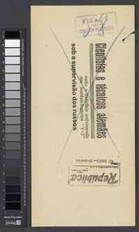 Pasta: 06778.136Título: RepúblicaAssunto: Cientistas e técnicos alemães estão a trabalhar activamente nas bombas-foguetes «V-2» sob a supervisão dos russosAutor do artigo: United PressData: Segunda, 18 de Março de 1946Fundo: DCD - Documentos Carvalhão DuarteTipo Documental: IMPRENSA Página(s): 2