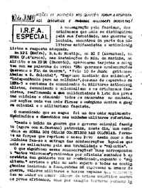 Pasta: 04435.864Título: I.R.F.A. Especial, 10 de Junho/Militares anti-colonialistasAssunto: Acções de agitação nos quartérias como resposta aos discursos e paradas militares fascistasData: s.d.Fundo: DST - Documentos Souto TeixeiraTipo Documental: Documentos Página(s): 2