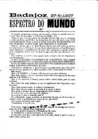 Pasta: 04435.552.042Título: Espectro do MundoNúmero: 2Data: Quinta, 27 de Junho de 1907Fundo: DST - Documentos Souto TeixeiraTipo Documental: IMPRENSA Página(s): 4
