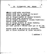 Pasta: 04355.009.002Título: "El testamento del negro"Assunto: Poema anónimo, intitulado "O testamento do negro".Data: s.d.Fundo: Arquivo Mário Pinto de AndradeTipo Documental: Documentos Página(s): 1