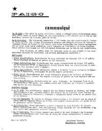 Pasta: 04315.002.018Título: Communiqué (PAIGC)Assunto: Comunicado do PAIGC. Nova vaga bombardeamentos Força Aérea portuguesa.Data: Segunda, 10 de Dezembro de 1973Fundo: Arquivo Mário Pinto de AndradeTipo Documental: Documentos Página(s): 1