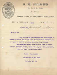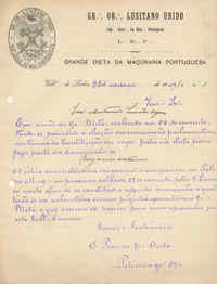 Pasta: 04503.003.006Título: Circular da Loja Gil Vicente n.º 263, ao Vale de LisboaAssunto: Circular da Loja Gil Vicente n.º 263 sobre realização no Templo José Estêvão, em 08.ABR.1909, de sessão solene para festejar o 3.º aniversário da instalação da loja e em homenagem à Loja Humanidade.Data: Terça, 30 de Março de 1909Fundo: DCD - Documentos Carvalhão Duarte/Simões RaposoTipo Documental: Documentos Página(s): 1