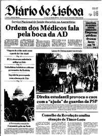 Pasta: 06833.183.28726Título: Diário de LisboaNúmero: 20241Ano: 60Data: Sábado, 26 de Abril de 1980Directores: Director: António Ruella Ramos; Director Adjunto: Fernando Piteira SantosFundo: DRR - Documentos Ruella RamosTipo Documental: IMPRENSA Página(s): 18