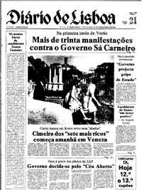 Pasta: 06833.183.28803Título: Diário de LisboaNúmero: 20310Ano: 60Data: Segunda, 21 de Julho de 1980Directores: Director: António Ruella Ramos; Director Adjunto: Fernando Piteira SantosFundo: DRR - Documentos Ruella RamosTipo Documental: IMPRENSA Página(s): 24