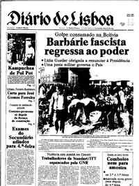 Pasta: 06833.183.28797Título: Diário de LisboaNúmero: 20304Ano: 60Data: Segunda, 14 de Julho de 1980Directores: Director: António Ruella Ramos; Director Adjunto: Fernando Piteira SantosFundo: DRR - Documentos Ruella RamosTipo Documental: IMPRENSA Página(s): 20