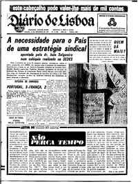 Pasta: 06807.157.25285Título: Diário de LisboaNúmero: 17258Ano: 50Data: Sexta, 8 de Janeiro de 1971Directores: Director: António Ruella RamosEdição: 1ª ediçãoFundo: DRR - Documentos Ruella RamosTipo Documental: IMPRENSA Página(s): 17