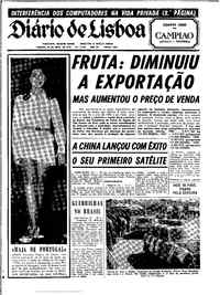 Pasta: 06613.151.24691Título: Diário de LisboaNúmero: 17002Ano: 50Data: Terça, 21 de Abril de 1970Directores: Director: António Ruella RamosEdição: 2ª ediçãoFundo: DRR - Documentos Ruella RamosTipo Documental: IMPRENSA Página(s): 32