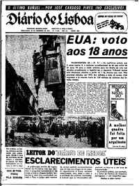 Pasta: 06807.157.25228Título: Diário de LisboaNúmero: 17229Ano: 50Data: Terça, 8 de Dezembro de 1970Directores: Director: António Ruella RamosEdição: 1ª ediçãoFundo: DRR - Documentos Ruella RamosTipo Documental: IMPRENSA Página(s): 40