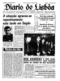 Pasta: 06587.125.22299Título: Diário de LisboaNúmero: 16312Ano: 48Data: Sábado, 18 de Maio de 1968Directores: Director: António Ruella RamosEdição: 3ª ediçãoFundo: DRR - Documentos Ruella RamosTipo Documental: IMPRENSA Página(s): 32