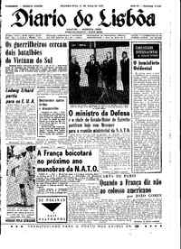 Pasta: 06559.097.19542Título: Diário de LisboaNúmero: 15226Ano: 45Data: Sexta, 7 de Maio de 1965Directores: Director: Norberto Lopes; Director Adjunto: Mário NevesEdição: 2ª ediçãoFundo: DRR - Documentos Ruella RamosTipo Documental: IMPRENSA Página(s): 28
