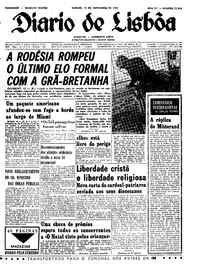 Pasta: 06564.102.19980Título: Diário de LisboaNúmero: 15413Ano: 45Data: Sexta, 12 de Novembro de 1965Directores: Director: Norberto Lopes; Director Adjunto: Mário NevesEdição: 1ª ediçãoFundo: DRR - Documentos Ruella RamosTipo Documental: IMPRENSA Página(s): 28