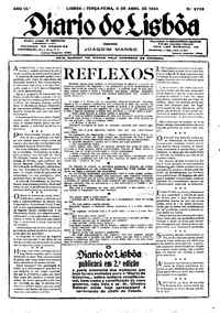 Pasta: 05751.015.04246Título: Diário de LisboaNúmero: 3740Ano: 13Data: Quarta, 12 de Abril de 1933Directores: Director: Joaquim MansoFundo: DRR - Documentos Ruella RamosTipo Documental: IMPRENSA Página(s): 8