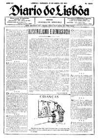 Pasta: 05749.013.03547Título: Diário de LisboaNúmero: 3064Ano: 11Data: Terça, 21 de Abril de 1931Directores: Director: Joaquim MansoFundo: DRR - Documentos Ruella RamosTipo Documental: IMPRENSA Página(s): 5